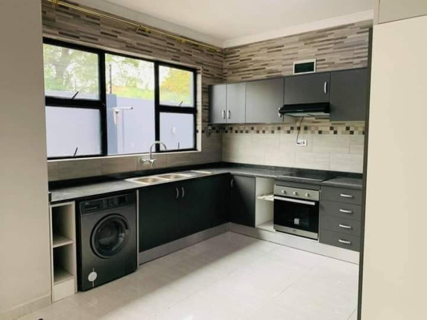 This is a beautiful and neat 3 bedroom apartment for rent in Woodlands, near Pick n Pay in Lusaka, Zambia. It comes with an exquisite master bedroom en suite, fitted with an extra modern kitchenette, exquisite bedroom wardrobes, a paved interlocking driveway, automated gate response, an overhead water tank, air conditioning, an in-built cooker/extractor, an in-built washing machine, and a backup generator. Make an appointment with us today!